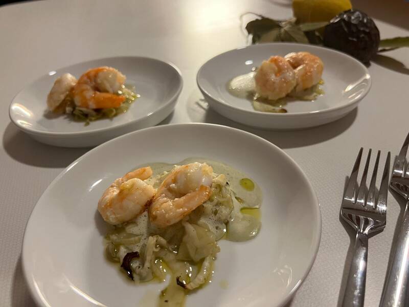 Fenchel mit Petersilienschaum und Garnele (4 Personen als Amuse gueule)